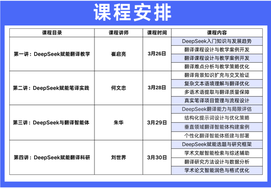 讲座时间:2025年3月26、28、29、30日,19:00-21:00。