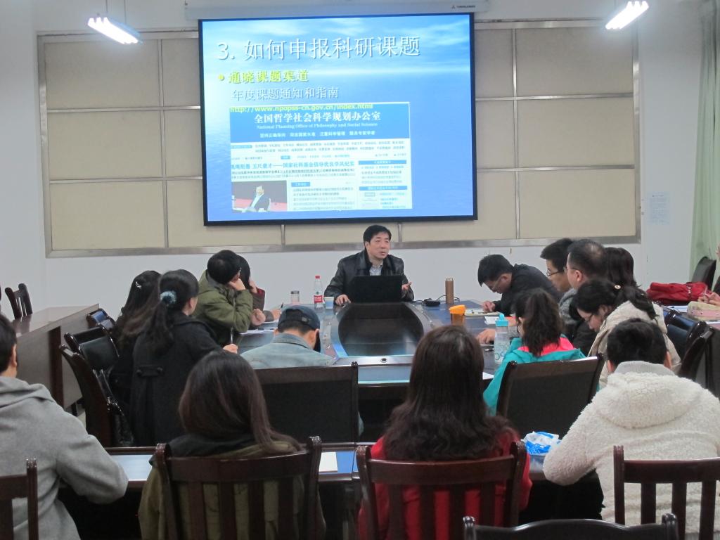 卢植教授作了题为“外语教师的科研与职业发展”学术讲座。卢教授指出publish or perish这一艰难抉择在国内外任何一所大学都存在,大学教师或多或少地都得参与科研工作中。卢教授认为教师科研工作的开展最好以申报课题为核心,紧接着讲座围绕申报科研课题的意义与作用,申报课题的技巧和方法展开。最后,卢教授还为拟从事科学研究的外语教师推荐了几本在方法论上必读书目。