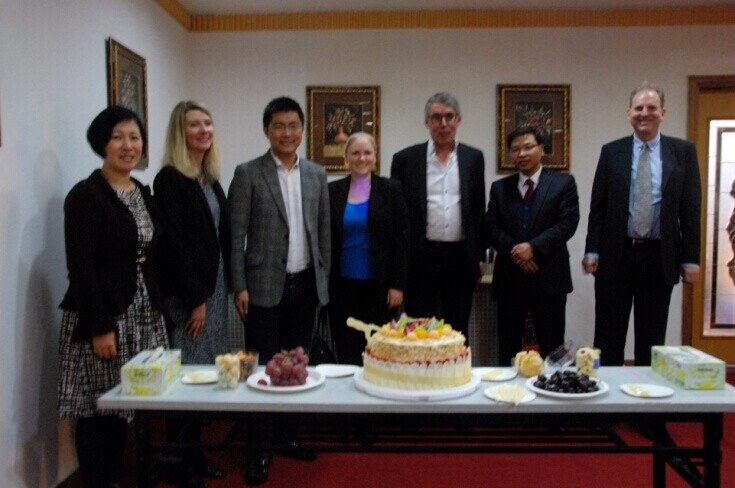 刘勇老师与国家统计局和OECD领导在生日蛋糕前合影留念 |