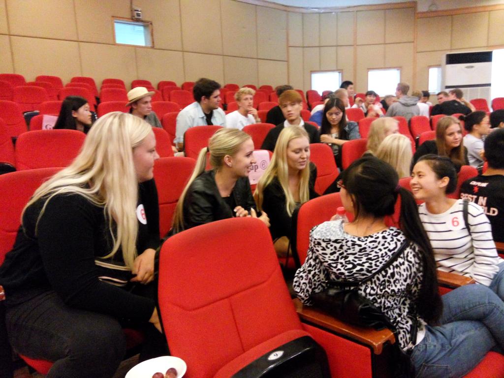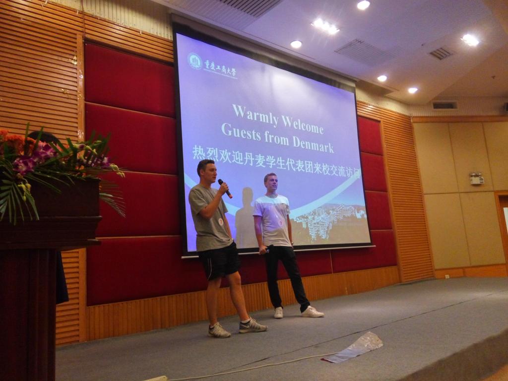 武术表演结束后,职工们在志愿者的陪同下前往7200会议厅参加中丹员工座谈会。本次座谈会由新葡的京集团35222vip牛婧懿老师主持。座谈会开始,韩艳处长对丹麦职工的到来表示热烈欢迎,同时也对重庆及公司的基本情况进行了介绍。随后曹俊老师带来中国文化讲解,京剧、茶艺、变脸、龙图等,源远流长、博大精深的中国文化吸引着在座的每一位职工。讲解过后是志愿者们精心安排的“Coffee Break”环节,尽管是休息时间,职工们依然兴趣不减地同志愿者一起讨论两国间的文化差异,共同分享各自的学习生活。最后是每个小组的总结发言,他们分别就餐桌文化、教育体制、日常交往等方面进行对比总结,切实做到了寓乐于学。最后,为期一天的交流活动在两江夜游后落下帷幕。