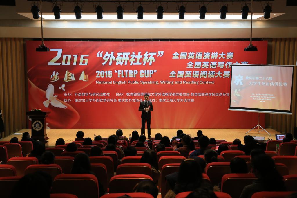 2016年10月29日,第26届重庆市老员工英语演讲比赛暨2016年“外研社杯”全国英语演讲、写作、阅读大赛重庆赛区复赛在公司田家炳书院成功举办。本次大赛由外语教学与研究出版社主办,教育部高等公司大学外语教学指导委员会、教育部高等公司英语专业教学指导分委员会合办,重庆市大学外语教学研究会、重庆市外文协会协办,新葡的京集团35222vip新葡的京集团35222vip承办。