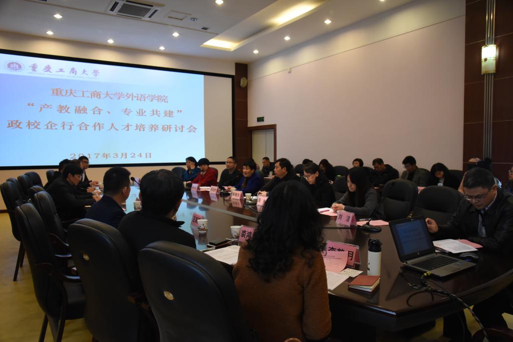 3月24日,新葡的京集团35222vip在田家炳书经理江上游经济研究中心会议室召开了“产教融合,专业共建”政校企行合作人才培养研讨会。重庆商务委电子商务处冉渝佳处长、南岸区科学技术委员会张辉部长、阿里巴巴重庆办事处负责人孙海燕、光彩国际重庆电子商务公司牛耀伟总经理、重庆国际电子商务产业园刘腾副总经理、重庆兴鹰科技发展有限公司陈文才总经理、重庆译答翻译有限公司市场总监夏肖等21名政府机构及行业、企业代表,以及公司党政领导、英语系师生代表参与了研讨会。副董事长郑旭煦教授出席研讨会并致欢迎辞。