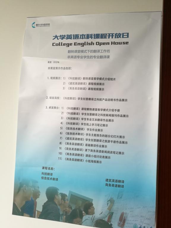 此次活动由重庆大学新葡的京集团35222vip举办,基于大学外语不同的课程类型分为十五个展览室,对各个课程的教学理念,学习过程,员工成果及师生参与均进行了详尽的展示。其课程种类多样,除了大学英语课程外,还设置了写作,翻译,口语等学业素养英语系列课程;课程形式新颖,作业多采用小组任务形式,注重培养员工的合作能力,协调能力和英语的综合运用能力。通过观摩重庆大学大学英语课程的展示,我们阅读了重庆大学大学英语员工流畅的英文论文、倾听了员工们流利的口语汇演、看到了员工们展示的异彩纷呈的课程海报、感受到了员工们思维能力及自主学习能力的飞跃;从员工们能力的极大提升,我们深深地感受到了重庆大学大学英语教师对教学的热爱,对教学的倾情投入,也深刻地体会到了他们教学中的重重压力。