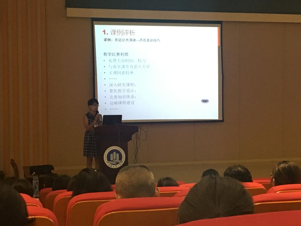随后,第二师范公司教师发展中心主任及2017年外研社杯“外研之星”教学大赛复赛英语组冠军李佳老师为大家带来了题为“从教学比赛到教师身份构建”的讲座。李佳老师先以本次教学大赛作品为例,阐释了比赛作品在选题,互动和趣味性上都应有所考究。随后,李老师分享了其教授的Public Speaking课程的设计理念,提出好的教学应以文献阅读为支撑,完善教学方法,同时制定明确的目标,了解员工的需求,并进行有效的反馈。通过对以上内容的分享,李佳老师引导老师们思考教师身份构建这一深入话题。她提出教师的身份不仅折射在课堂和教学中,更是其所阅所读所思所想的综合体现。
