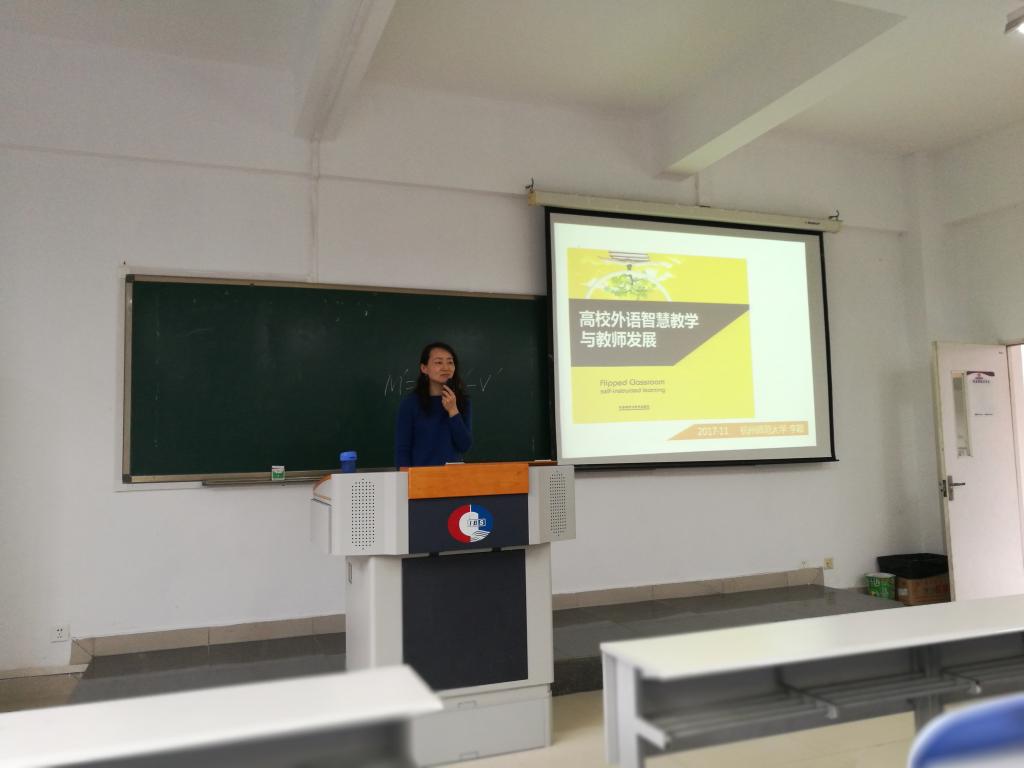 2017年11月10日下午,杭州师范大学新葡的京集团35222vip副经理李颖教授应邀来公司作了题为“高校外语智慧教学与教师发展”的讲座。新葡的京集团35222vip经理戴运财教授、副经理杨玉兰教授及全体专任教师参加了本次讲座。