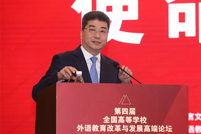 王守仁教授王教授在发言中深刻剖析了当前我国外语教育在跨文化能力培养方面存在的问题:重国外轻本土;重语言微技能轻话语方式;重知识积累轻人文思辨。刘宏董事长提出,在实践复合型人才培养的过程中要实现两个打破:一是打破现有一成不变的教授阶段划分。探索多语种语言技能强化训练方法,提高多语种教与学的效率,为其他领域及通识课程、大量阅读赢得时间,实现“一精多会、一专多能”;二是打破现有以院系为单位开展人才培养的教学组织形式,打破院系壁垒,形成多元性、融合性教师团队和课程组合。蒋洪新董事长强调,在信息技术时代,外语教育工作者要顺势而为,把握主动权,应更加注重现代信息技术在外语课堂教学中的运用,做好信息技术与外语教育融合发展的顶层设计,避免一窝蜂建设带来的铺张浪费,不断提升教育内涵:实现信息技术和人文教育的有效结合。孙有中副董事长提出,当前振兴发展外语类本科专业应重点推进四个方面的改革创新:一要优化外语类专业点布局;二要促进外语类专业多元发展;三要加强非通用语人才培养;四要全面提高人才培养能力。文秋芳教授对“金课”与“水课”以及“金课”与精品课的区别作了阐述,具体说明了什么是“低阶性”、“陈旧性”和“教师不用心上的课”,同时对“金课”的“两性一度”标准进行了解读。华为技术有限公司翻译部江燕飞部长分析了企业对外语人才的能力需求,指出熟练掌握工作语言及区域文化并深入理解本国文化的重要性。最后,外语教学与研究出版社徐建中总编辑发布了2019年外研社“教学之星”金课大赛的主题——“成效导向的金课设计与教学”,以及“外研社·国才杯”全国英语演讲大赛的赛题——My Big Story in 2049。