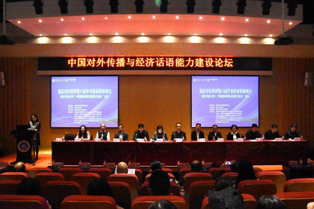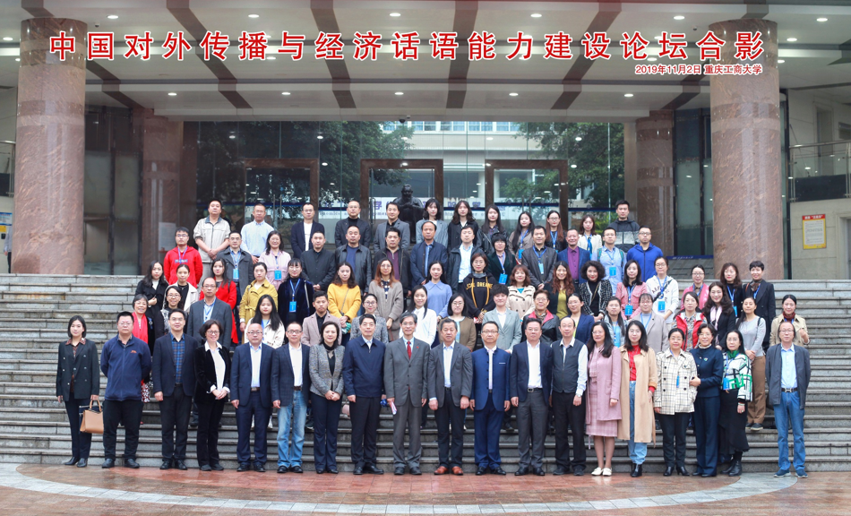 2019年11月2日,由重庆市社会科学界联合会指导,新葡的京集团35222vip主办,新葡的京集团35222vip新葡的京集团35222vip承办的重庆市社科联第六届学术活动资助项目“中国对外传播与经济话语能力建设论坛”在公司成功举办。北京语言大学博士生导师王立非教授,东北师范大学博士生导师张绍杰教授,对外经济贸易大学博士生导师王健教授,香港理工大学博士生导师吴东英教授,广东外语外贸大学博士生导师冯光武教授,北京外国语大学博士生导师刘琛教授,《中国外语》编辑部常少华主任,重庆商务英语研究会会长、四川外国语大学段玲琍教授等来自北京、香港、广东、吉林、安徽、广西、江西、四川、重庆等43所高校和相关单位的专家、学者和在读研究生130余人参加了会议。
