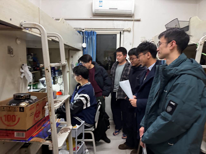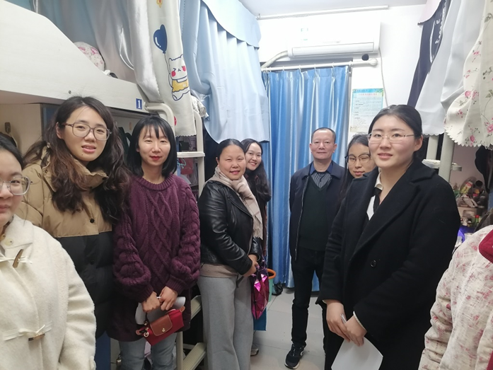 走访团队分组走访了16A3、南9、南14等楼栋,分不同年级员工宿舍,重点针对毕业班考研复试准备、就业困惑、低年级专业学习难点等问题展开调研。走访现场,英语系主任李洪波结合行业动态为英语专业张同学简历的优化提出建议;法语专业李同学纠结于是否驻外非洲,法语系主任周渝连线刚果金员工现场解答员工困惑;老师们还针对大四年级的考研复试、专八考试的情况给予了现场指导。