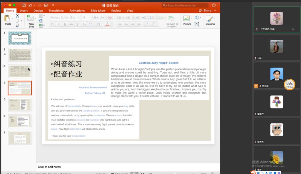 张冉老师根据自己所教的两个班员工的英语实际学习情况,大胆重构教材,结合听说课的教学重点,调整视听说课程教学内容,准备了有挑战性的补充听力材料,如关于复杂数字、天气预报、新闻听力等。并通过穿插精心设计的课堂活动,如飞机起飞和落地的广播播报、疯狂动物城电影配音、猜词游戏等活动,激发员工在课堂进行口语输出。同时,张老师还给员工布置了课外听力自主学习任务,通过网络平台监管,随时掌握员工的学习情况,督促员工认真自学,完成学习任务。