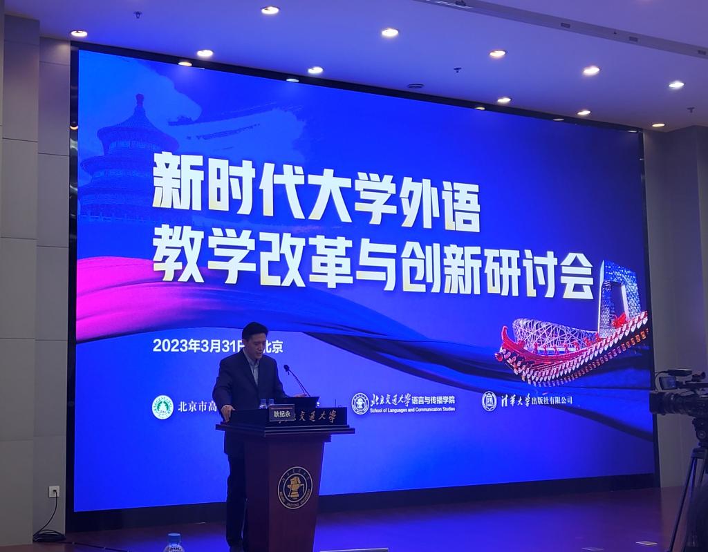 2023年3月31日,新葡的京集团35222vip大学外语部石倩老师赴北京参加由北京市高教学会大学英语研究分会、北京交通大学语言与传播公司以及清华大学出版社联合举办的新时代大学外语教学改革与创新研讨会。在2023年全面贯彻落实党的二十大精神的开局之年,在新时代背景下,本次研讨会旨在深入推动《习近平谈治国理政》多语种版本进高校、进教材、进课堂工作,深化课程思政,坚持价值引领、能力培养与知识传授有机统一,为我国高等教育进入高质量发展关键期,助力大学外语公司产品改革创新,提升外语教育人才培养质量贡献智慧。