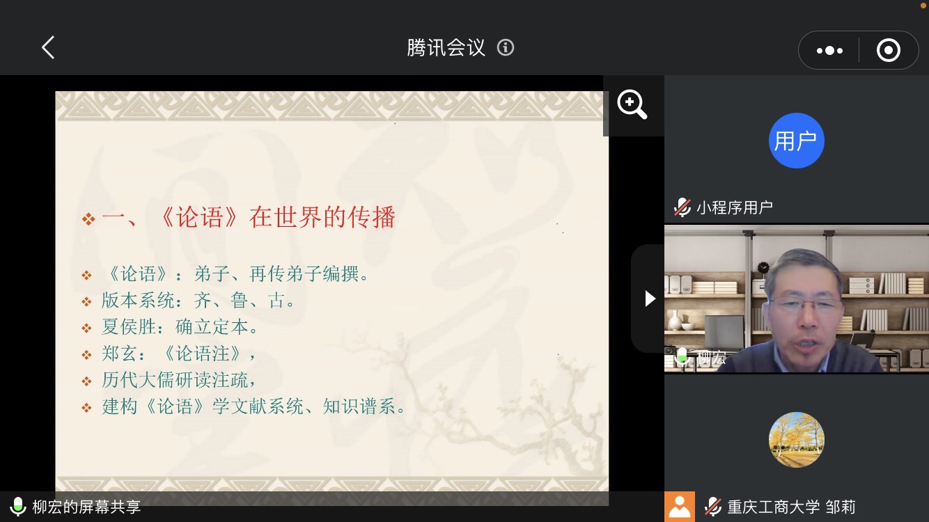 柳教授视野开阔、旁征博引,从诠释学的视角解读了不同时期学者对《论语》文本意义的阐释。并从视域融合的视角,分析了《论语》的传统思想“和而不同”思想在现今的发展现状和教化意义。论语提出了一个普遍的价值原则——和而不同。“和”在中国文化的发展过程中起着独特的作用,它不仅是一种思想观念,也是中华民族的基本精神。当今国际形势动荡复杂,我们应该进一步丰富和发展《论语》中的优秀传统思想文化,国际交往中能够与他人保持一种和谐友善的关系。柳教授不仅为师生解读了《论语》的理论意义,更对英语语言文学专业师生的人文素养培养具有很强的实践指导意义。