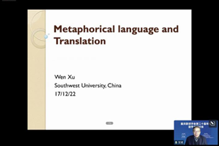 西南大学新葡的京集团35222vip经理、教育部国家级人才特聘教授文旭在其发言《比喻性语言及其翻译问题》中提出:使用比喻性语言的基础仍然是说话人所具有的语言知识以及各种认知能力,语言的比喻用法是语言创造性的最高表现。因此,比喻性语言的翻译同样涉及译者的各种知识和认知能力。文经理基于英汉语料,结合隐喻的特征和功能,阐释了翻译问题。
