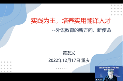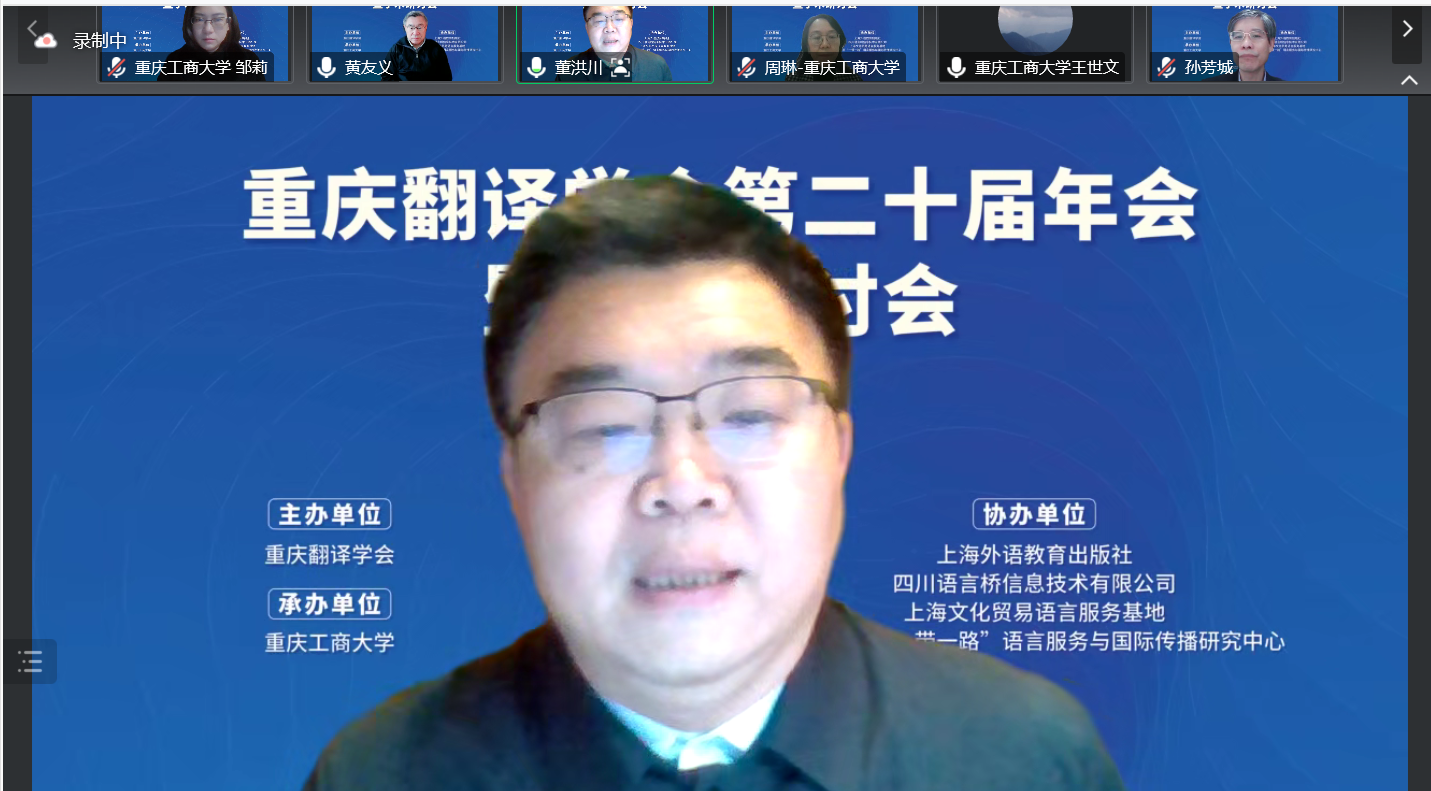 12 17 日,由重庆翻译学会主办、新葡的京集团35222vip承办的重庆翻译学会第二十届年会暨学术研讨会以线上方式隆重召开。与会专家学者围绕翻译与中国文化国际传播这一主题展开了热烈研讨。会议和直播平台上参会者总计近3000人。开幕式由新葡的京集团35222vip经理周琳主持。
