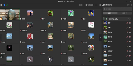 会议的第二个环节是中心成员就假期计划推进的团队建设和科研工作进行的探讨和交流。李伯利老师就新组建的科研团队将要开展的工作简单介绍了初步构想和可能的进展方向,叶蕾蕾老师和佘雨新老师提到了完成结项课题论文的挑战和可能的解决办法,其余与会人员也参与了假期科研规划的讨论。此次学术交流会给出了关于学术写作和暑期科研规划的有益建议,极大提升了中心成员利用假期充实自身科研实力和学术背景的信心。