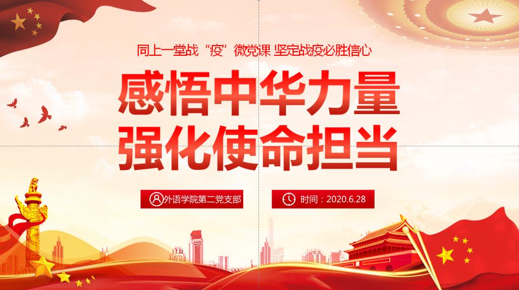 随后,各支部书记为支部党员讲党课。教工第一党支部书记向鹏从习总书记在疫情期间做出的重要指示出发,阐释了党的领导是打赢疫情防控阻击战的坚强政治保证,广大党员要立足本职岗位,以实际行动“守初心,担使命,找差距,抓落实”,不断在疫情防控中践行初心使命;教工第二党支部书记汪玉玲以《感悟中华力量 强化使命担当》为题,讲述了在这场疫情防控阻击战中,在党的领导下,中国人民团结一致、共抗疫情所展现出的中国速度、中国力量、中国精神以及中国担当;教工第三党支部书记戴雪梅通过真实的案例阐释了“始终把人民群众生命安全和身体健康放在第一位”是中国共产党全心全意为人民服务宗旨的体现;员工党支部书记丁亮通过一系列青年援鄂医务人员不畏艰险、冲锋在前的感人事迹,教育引导员工党员要有理想、有本领、有担当。