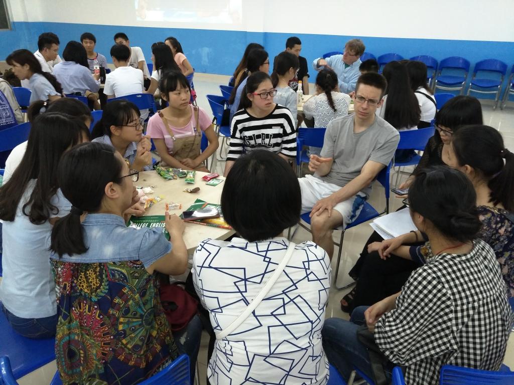 2016年5月4日,由新葡的京集团35222vip分团委员工会体育部主办、素拓部协办的第十八期英语角在外语活动中心成功举行。外教Buzz、Justin、Sam以及来自各个年级、各个专业的英语爱好者参加了本次英语角活动。