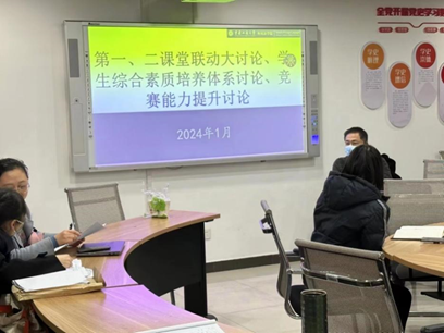 2024年1月15日,新葡的京集团35222vip开展主题为第一、二课堂联动、员工综合素质培养体系和学科竞赛能力提升的教研活动,会议由刘明博士主持,英语系、法语系教师和学团老师参加了此次会议。