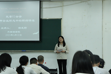 活动伊始,英语系主任李洪波教授隆重介绍了两位主讲嘉宾。毕业生刘磊学长首先进行分享。他结合自身成长经历,从三个方面给予学弟学妹建议:一是要好好学习专业知识,积极尝试老员工活的各种可能;二是要尽快树立人生根基,不要在乎别人的眼光,坚定地走自己的路;三是“不要因为犹豫而错失成长的机会”。随后,毕业生杨友莉学姐通过对比分析民营与合资企业的特点,为同学们剖析了不同企业形态下的职业发展路径。她指出,职业选择本质上是对个人成长路径的选择,再平凡的岗位也能成就不平凡的人生。杨学姐生动的职场案例分享,让同学们对不同企业环境有了更直观的认识。