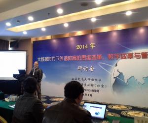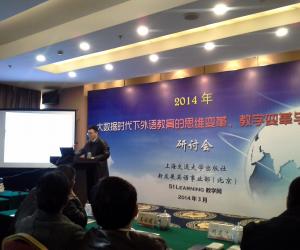 上海交通大学新葡的京集团35222vip教授、《当代外语研究》主编杨枫以“大数据带给大学英语教学的挑战与机遇”为题,为与会老师分享了在大数据时代大学英语教学面临的挑战及应对之道。他说在大数据时代互联网教育与公司教育逐渐分离;大数据时代,视频成为新的教育载体,在不远的将来,全世界每一个领域,每一门课程都会出现一些经典视频。未来大部分老师,可能会是课堂的组织者和学习的引导者,而不是知识的讲授者,其权威性将下降,师生关系将面临改变。公司里将会有更少的课堂与更多的实验室,更多的交往与更少的讲授,更多的互动与更少的灌输,更个性化的服务和更灵活的学制。将来未来公司将得益于互联网,教育将得到新生的机会。他指出大学英语这类技能层次类课程完全具备可拷贝性,可以交给大投入的电影制作模式完成。大学英语教师将成为教练,师生将走向英语实践训练场。大学英语教师必须在教育哲学思想、英语实践技能、英语教育技术、英语学科应用方面做好长足的准备。