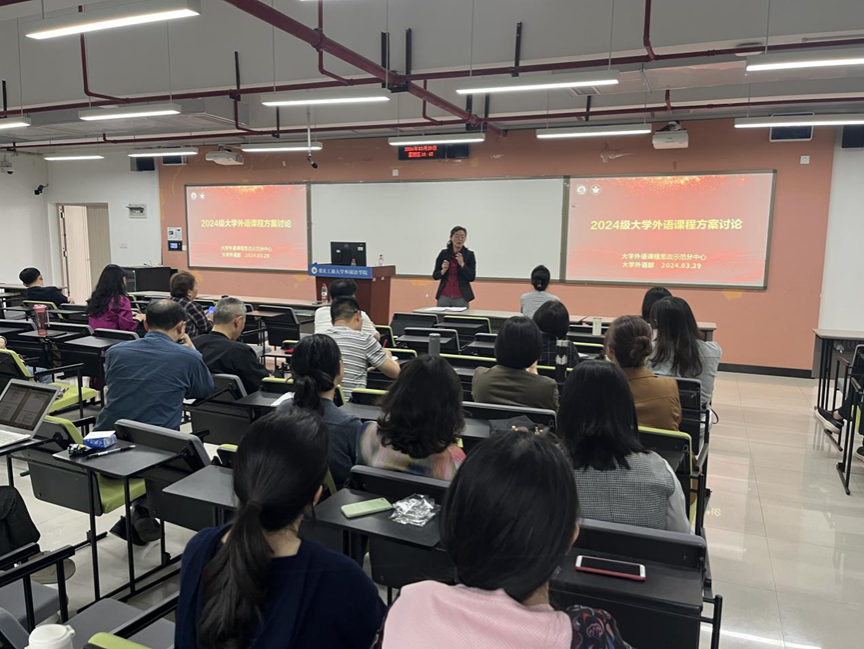 王文丹女士讲座结束后,大学外语部教师继续进行了新文科背景下2024级大学外语课程方案专题研讨。刘繁副经理还针对2024年本科公司产品审核评估工作,梳理了从开学初到三月底组织教师进行教学三大件的整改和完善的情况,通报了督导对2023-2024(1)试卷的审核反馈,并布置了下一步本科公司产品审核评估工作。