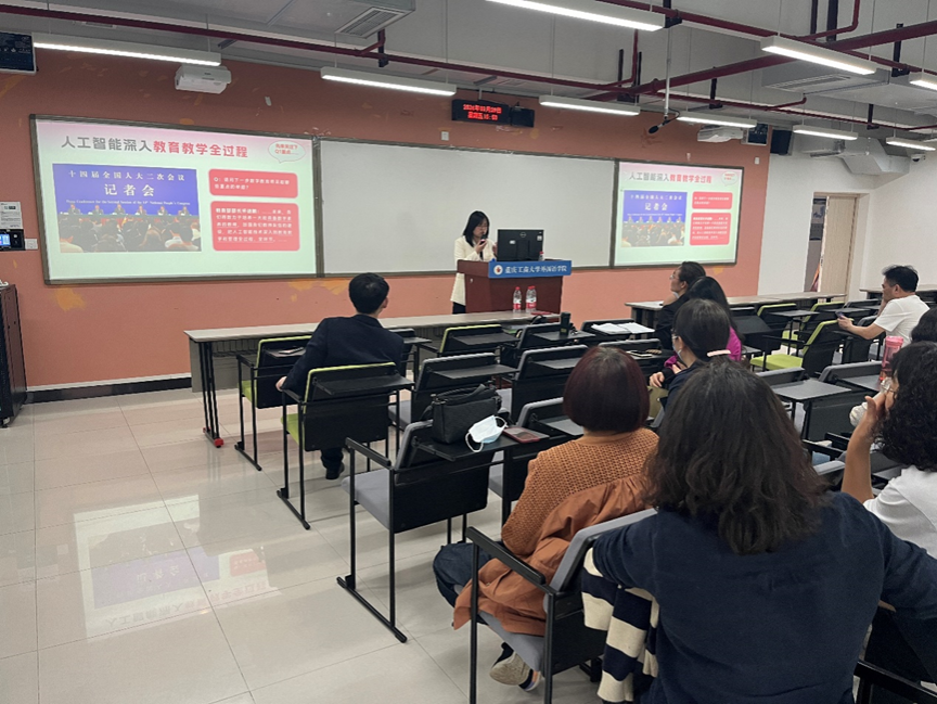 教研活动伊始,大学外语部邀请了智慧树重庆课程总监、金课咨询师王文丹女士为大学外语部教师开展了主题为基于知识图谱的数智化课程建设与应用的讲座,推动一流课程建设。王文丹女士首先介绍了人工智能深入公司产品的全过程,以及当前课程建设的新趋势。数智化课程以知识图谱为依托,以人工智能为支撑,重构课程体系与教学设计并运用人工智能技术赋能教学全过程,最终达到提升人才培养质量的目的。王文丹女士详细分析了“六维”知识图谱建设模型,从契合新一轮评估的主要特点以及行业需求两方面,介绍了从专业能力突破方面建设知识图谱体系及其优势。王文丹女士指出在知识图谱建设过程中,需结合专业培养目标,分析当前各大企业招聘信息,分析用人需求和真实工作内容,建设岗位能力模型。课程知识图谱可成为促进员工个性化学习的引擎,搭建知识与能力之间的桥梁。最后,王文丹女士就教师及员工如何使用AI智能伴学,达到以智助学实现个性化学习的目的展示了AI助教的学习方式和流程。