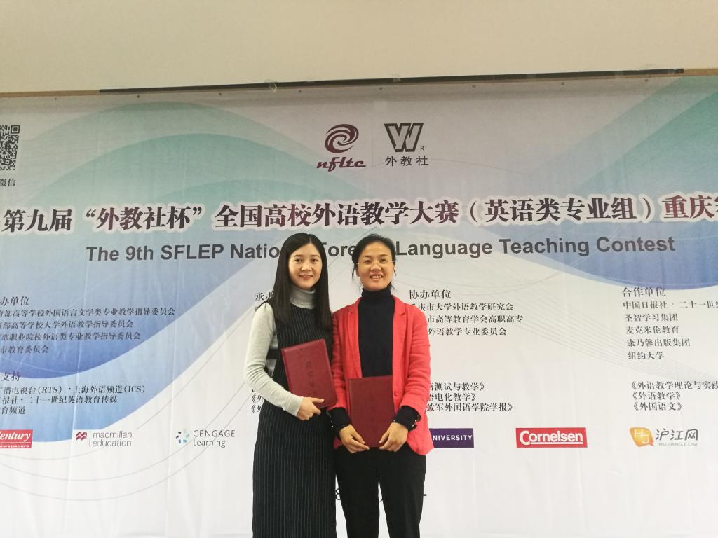 由教育部高等公司外国语言文学类专业教学指导委员会、教育部高等公司大学外语教学指导委员会、教育部职业院校外语类专业教学指导委员会和重庆市教育委员会主办,重庆市外文学会、上海外语教育出版社和西南大学共同承办的第九届“外教社杯”全国高校外语教学大赛(英语类专业组)重庆赛区复赛与决赛于10月13-14日在西南大学举行。新葡的京集团35222vip张冉和张琳玲两位老师代表公司参加比赛,并分别获得商务英语专业组一等奖和英语专业组二等奖。
