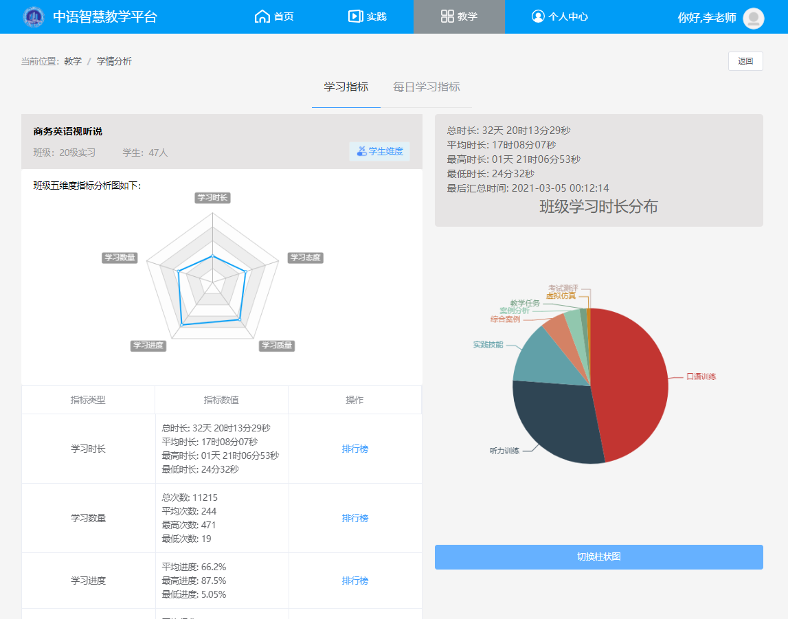(教师端学习指标)