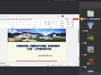 英语系担任《汉英翻译》课程的骆萍老师介绍了在教学过程中使用《理解当代中国》教程的基本情况,和课程教学目标、教学环节实际任务设计和员工翻译实操中充分融入《理解当代中国》的内容。法语系周渝老师介绍了法语专业的“三进”专门课程中如何融入《理解当代中国》的内容,并与法语专业的综合类阅读课程和听力课程形成良好互动。