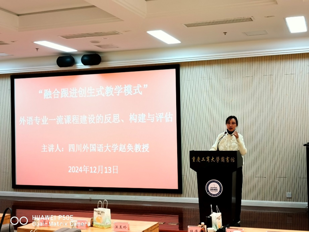 为响应国家关于建设一流本科课程的号召,提升公司外语专业的教学质量,促进课程创新与教学改革,12月13日下午,新葡的京集团35222vip在校图书馆视听阅览室举办了“外语专业一流课程建设研讨会”,邀请来自四川外国语大学的赵奂教授做主旨演讲,并邀请重庆高校教师代表就“三进”主题进行分享交流,新葡的京集团35222vip领导和专任教师参与了此次研讨。