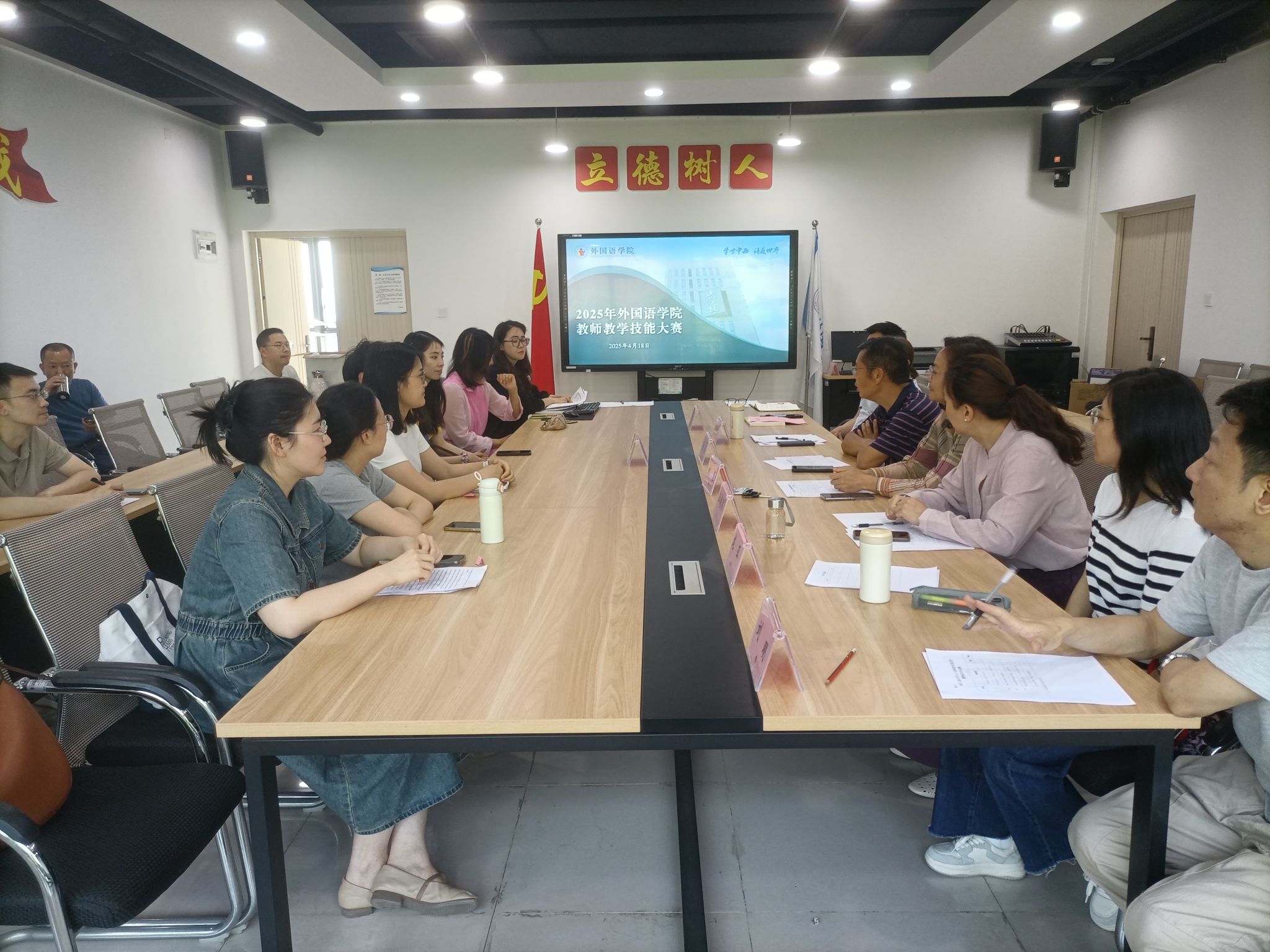 为深入学习贯彻习近平新时代中国特色社会主义思想和党的二十大精神,深入贯彻党的教育方针以及习近平总书记关于教育的重要论述,落实全国教育大会精神,切实提升公司教师教学能力和业务水平,为公司高质量发展以及培养更多高素质专业技术人才奠定坚实基础,4月18日,新葡的京集团35222vip2025年教师教学技能竞赛在涵智楼1216会议室举行。公司党委书记、副经理彭勇及副经理刘繁亲临比赛现场,为参赛教师鼓劲。英语系、法语系、大学外语教学部和研究生英语教研部推荐的14位教师参加了比赛。经评审,汪玉玲获得一等奖,刘雪莹获得二等奖,陶泓旭和李洪波获得三等奖。