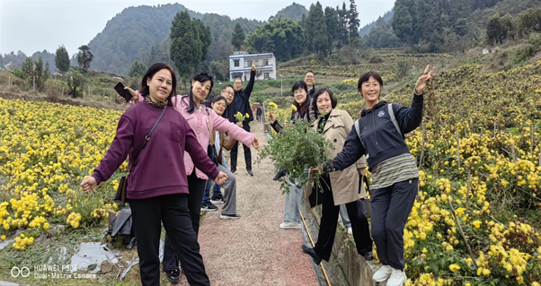 老师们首先前往东温泉镇黄金林村天赐革命烈士陵园,瞻仰了烈士纪念碑,了解了牺牲在1949年解放战争和1950年剿匪战争中的九位烈士的英勇事迹,深切缅怀革命先烈的丰功伟绩。随后,老师们参观了黄金林村,欣赏了九花谷漂亮的金丝皇菊、品了金丝皇菊茶,并自愿选购了金丝皇菊茶、柑桔等农贸产品,真切感受了美丽新农村日益焕发的勃勃生机,以实际行动助力乡村振兴。