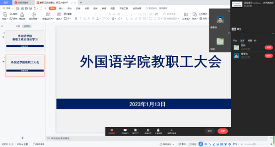 2023年1月13日,新葡的京集团35222vip召开线上会议,开展1月份教职工政治理论学习。新葡的京集团35222vip党委书记、副经理唐春秋主持学习会。