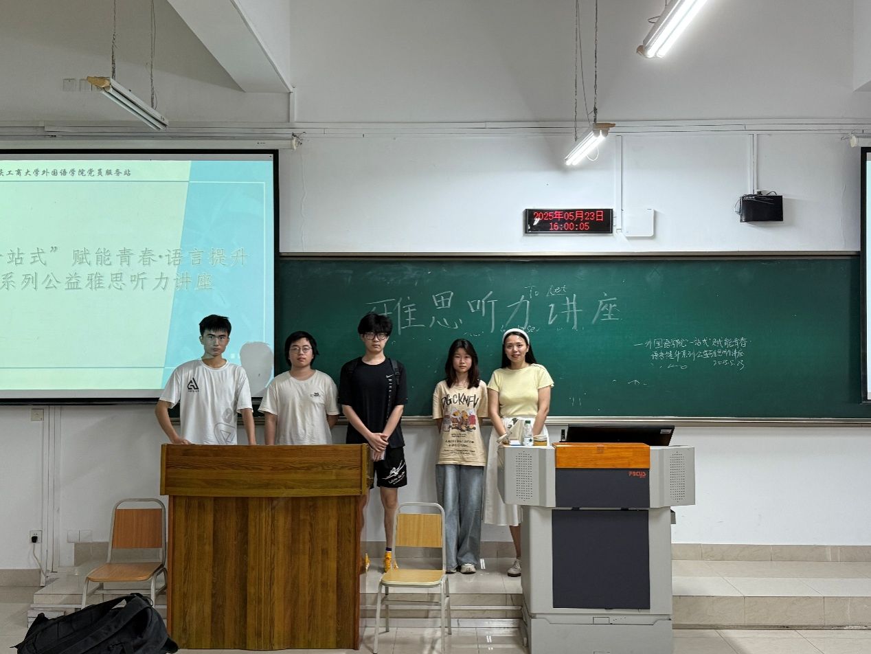 2025年5月23日,大学外语课程思政示范分中心与新葡的京集团35222vip党员服务站携手,在南岸校区博智楼07221教室成功举办了“一站式”赋能青春·语言提升系列公益雅思听力讲座。讲座特邀深耕雅思教学领域、经验丰富的张洵老师担任主讲,为同学们带来了一场内容翔实、互动性强的知识盛宴。