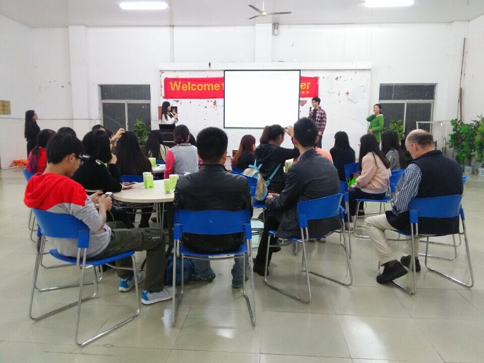 2015年4月22日18:30,在外语活动中心,英语角于舒缓的音乐中拉开了帷幕。此次活动由义工部主办,素拓部协办,参加本期英语角的有外教David等嘉宾。