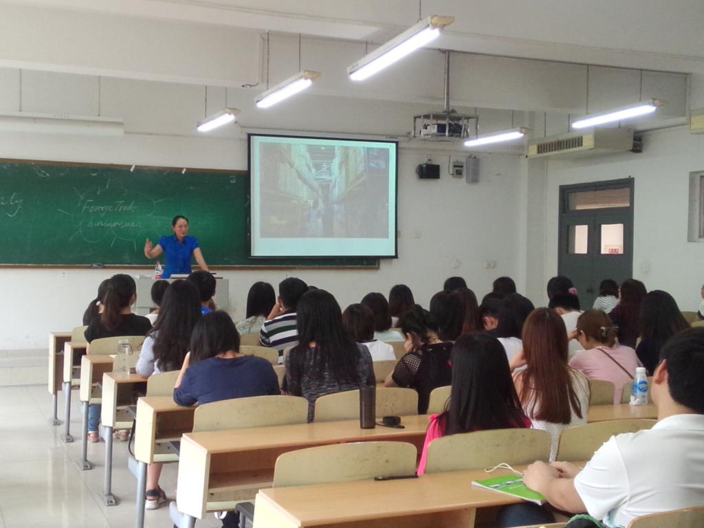 同学们根据已学到的知识积极地做出了回答,李经理也对该答案给予了相应的补充。通过参与这三个问答,李经理成功地吸引了所有在场观众的眼球。接下来讲的是Foreign Trade Procedures,其中包括签订外贸合同(询盘-发盘-还盘-确认)、备货(和工厂签订购销合同)、报关装船(申报-查验-放行-结关)、结汇收款(T/T、LC、DP、OA)和核销退税(不同的商品有不同的退税率)。接下来李经理给同学们看了一些工厂的图片,大家从图片可以看到,工厂的环境有好有差,工厂的设备有先进的也有落后的。李经理也分别对这些照片进行了详细的解说。从一个亲身经历者的角度,阐述了工厂、车间、产品、包装、员工等情况,使得大家对生产有了一个全面的、详细的了解。接下来,李经理讲的是Business Talents/Capability。针对不同的环节,李经理给出了不同的建议:1、签订外贸合同环节(相通的语言、自信、有礼貌、产品知识、谈判能力、专业的工作态度等)2、备货环节(花样、款式、包装、质地、数量、交货日期等)3、报关装船环节(通知买家收货)、委托报关(申报品名,单位,HS编码,申报要素等)4、结汇收款环节(正确性和准确性)。在讲述这些商务英语人才应具备的能力的时候,李经理用她自身的经历向我们证明这些能力的重要性。在场的所有同学都觉得获益匪浅。最后,李经理给同学们提出三点建议:Reading、thinking、andtrying to learn more foreign languages.同时也与大家积极互动,给同学们推荐了一些值得一看的好书,并且鼓励大家多多学习外语,勇于开口说外语。最后,李经理以一句鼓舞人心的话结束了讲座:Don’t complain about life! No matter whom you meet, what you face,all that you have encountered will become the wealth in your life.