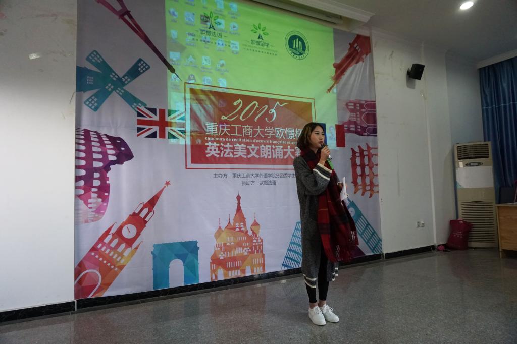 2015年11月6日,由共青团新葡的京集团35222vip委员会主办、新葡的京集团35222vip分团委员工会承办的2015“欧憬杯”英法美文朗诵大赛在明德楼3019会议厅成功举行。新葡的京集团35222vip经理戴运财、副经理周琳、各公司主席团代表出席并观看此次比赛。新葡的京集团35222vip教师张保亚、曹俊、陈康、Justin、胡新宇、汪越骐;欧憬法语教师CiCi、Clément应邀担任大赛评委。
