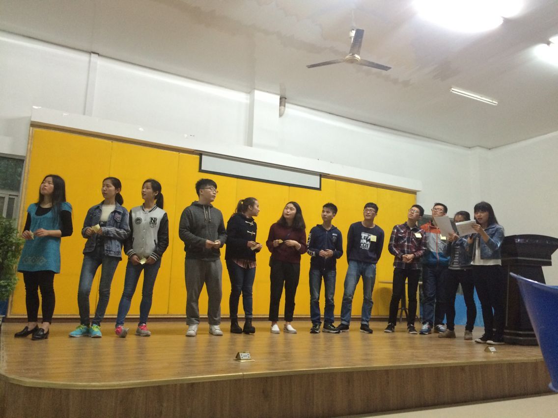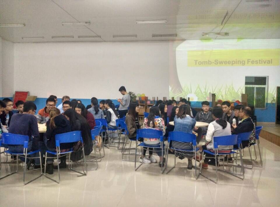 本期英语角在主持人唐丽和冉操的热情开场中拉开帷幕。活动共分为三个环节。首先是主持人致欢迎词并引出本期英语角的主题“The Tomb-Sweeping Festival”。随后是游戏环节“Riddles and Brainteasers”,游戏总共分两轮,游戏过程中,速度与智慧的比拼难分伯仲,场下观众情绪激昂,场上观众全心投入。紧接着是节目表演,英语班周璐同学深情演唱《I Love You》,引起了在场同学们的热烈欢呼,简单轻快的旋律使同学们不由自主的跟唱起来,逐渐融入英语角的欢快气氛中。随后,外教Sam介绍了他的员工Rocky——一位从英国林肯大学交换回归的学长。Rocky从文化、建筑、旅游方面大致介绍了自己的英国留学经历,带大家领略了文化斑斓、风情各异的欧洲。自由交流环节中,在场同学分组同外教分享对欧洲的印象,对这片与亚洲有着完全不同色彩的地域有着强烈的好奇。外教们也积极热情地对同学们的问题进行解答,加强了同学们对欧洲的认识。活动共持续两小时,在同学们的热烈掌声中,本期英语角圆满落幕。