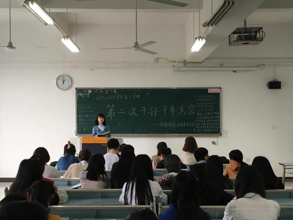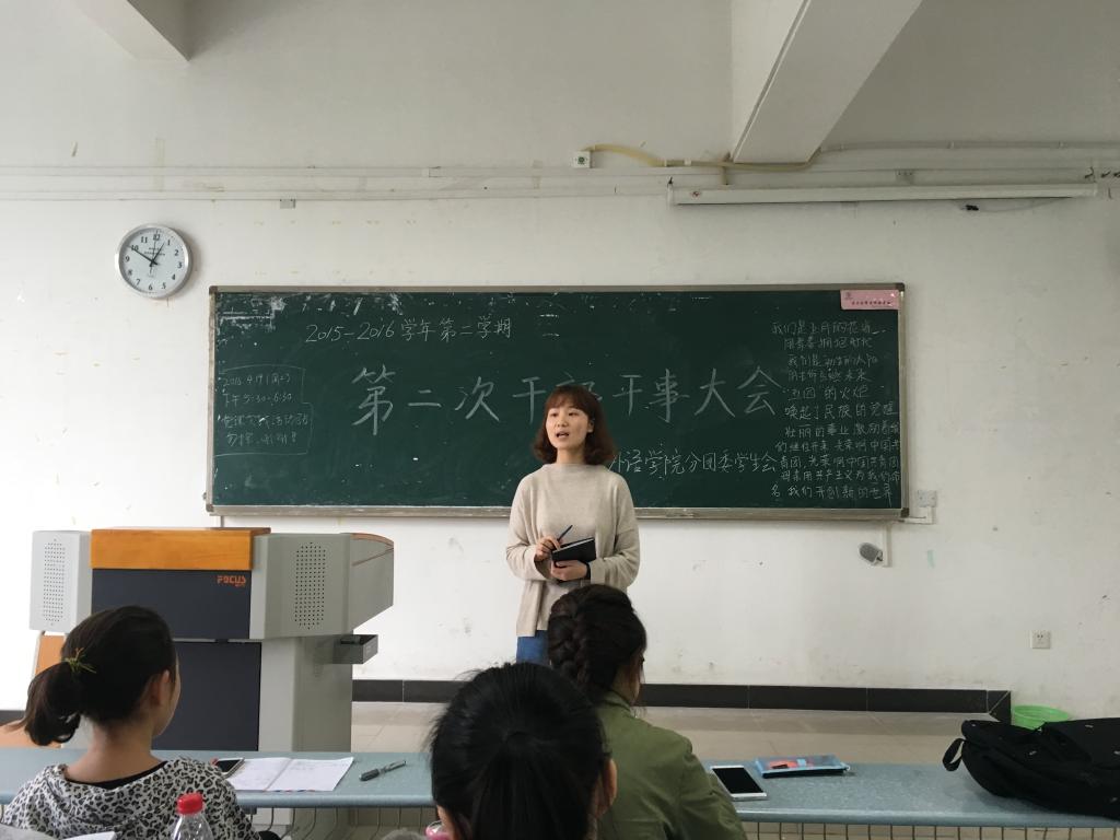 4月12日下午1点整,新葡的京集团35222vip新葡的京集团35222vip分团委员工会第二次干部干事大会在兰花湖校区广智楼20307教室顺利召开。新葡的京集团35222vip分团委副书记李双、主席朱镜宇、副主席丁瑶瑶以及全体员工会干部干事参与了此次大会。大会由主席朱镜宇主持。