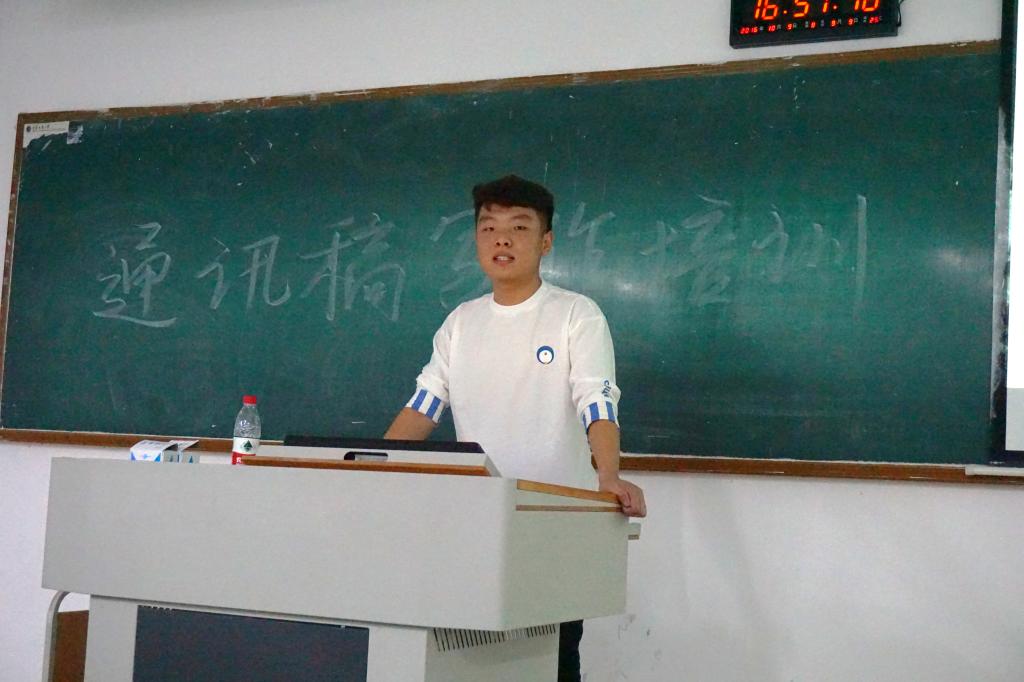 培训会上,副书记刘昊采用轻松幽默的讲述方式,详细地讲解了通讯稿的写作步骤、方法及要求,有针对性地对通讯稿写作技能进行了传授。他指出,通讯稿写作的工作流程包括信息采集、信息整理、新闻写作和改稿审稿四个方面,并就这四个方面一一进行了说明与演示。讲解过程中,干部干事们被副书记的细致、激情幽默所吸引,一个个都专心致志听讲,一丝不苟地做笔记。同时,他也从正、反面进行了示例,对比说明通讯稿写作中出现的格式错误、措辞不当、称呼有误、内容赘余等问题,充分体现了写作工作的严谨性。随后,他对照片的拍摄也做了注意细节、避免干扰、角度端正、明亮清晰等要求并举例详解,言语风趣幽默,打趣的同时令人记忆深刻。