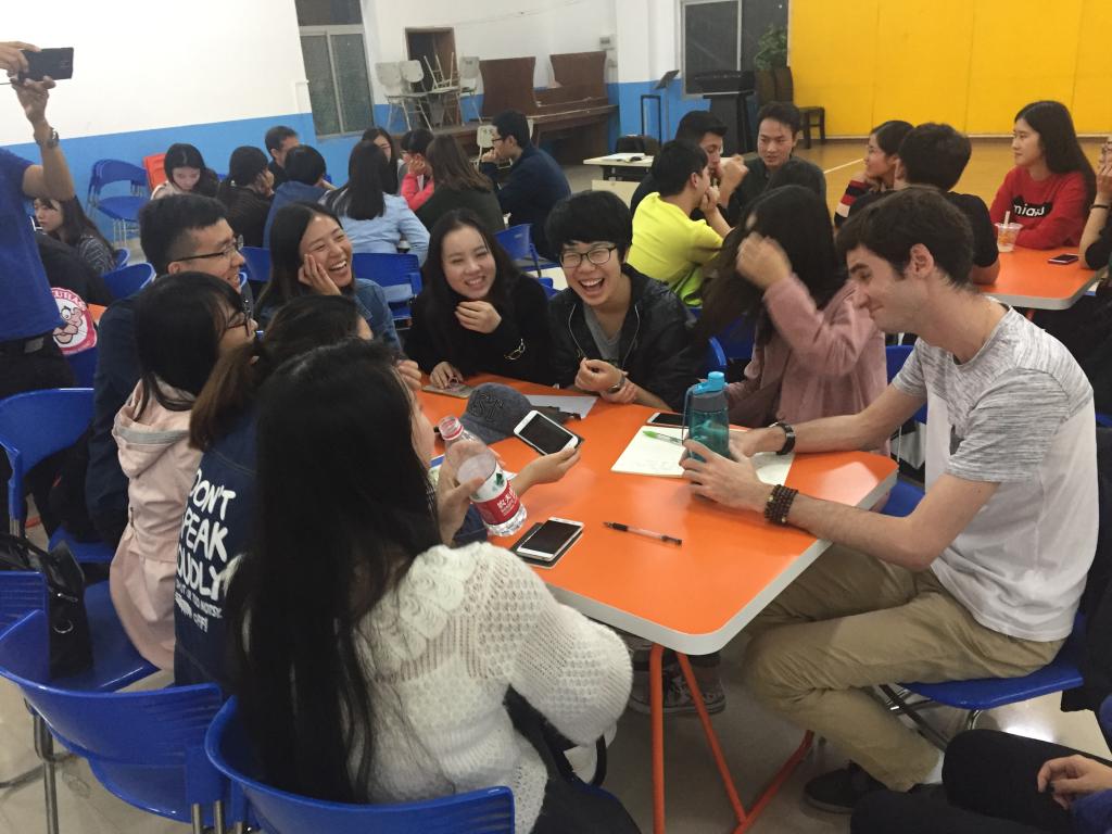 首先,主持人为现场同学介绍并解释了英语角的主题。接下来,外教们纷纷上台为大家作自我介绍,这让同学们激动不已。来自法国的外教Jonathan热情地与同学们分享了自己来重庆的经历,并积极地为大家讲解了法国习俗,同学们听得兴致勃勃,现场欢呼声阵阵。接着他就本次英语角的主题谈了一下自己关于海淘的经历与观点。接下来就是同学们等待已久的free talk环节,大家迫不及待地围坐在一起用英语畅谈自己的海淘经历,激烈的讨论声中时不时传来同学们的欢笑声。同学们积极地与外教沟通以锻炼自己的口语,外教们也热情地为大家答疑解惑,现场气氛热闹融洽。最后,在热烈的掌声中,本期英语角圆满结束。