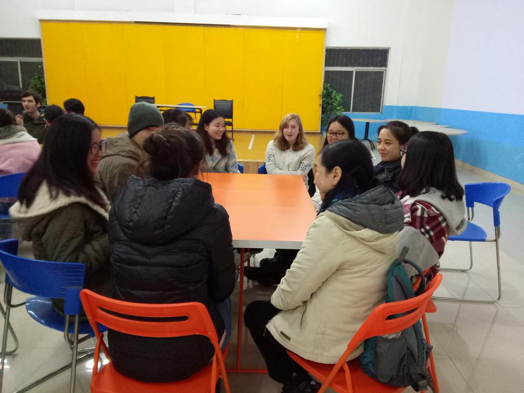 2016年11月23日18:30,由新葡的京集团35222vip分团委员工会素拓部主办的第二十七期英语角在南岸校区外语活动中心成功举行。外教Justin、Kevin、Buss、Michael、Jonathan以及来自全校的英语爱好者参与了此次活动。