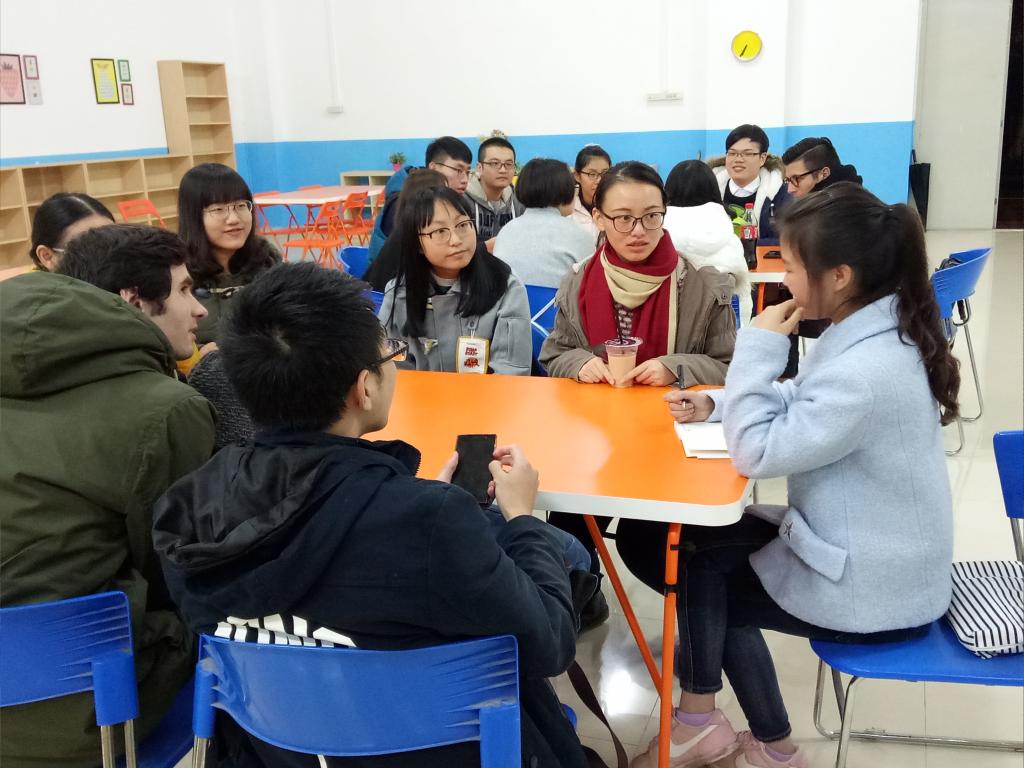 2016年12月7日晚六点三十分,第28期英语角在南岸校区外语活动中心顺利举办。本次活动由新葡的京集团35222vip分团委员工会组织部主办,素拓部协办。外教Justin,Buzz,Sam与来自全校的英语爱好者共同参与了本次主题“Super stars and super fans”的讨论。