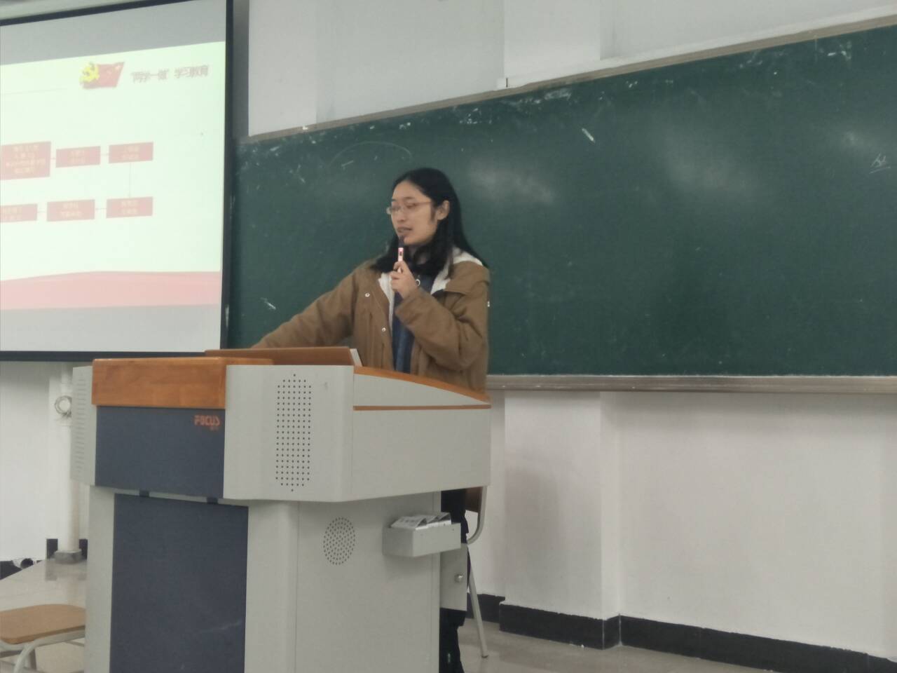 活动伊始,黄老师引入主题“不忘初心,砥砺前行,做合格共青团员”,先后向同学们介绍了十九大召开的背景、主题、意义以及“两个一百年”的奋斗目标等内容,着重讲述了在十九大报告中提及到的青年人的责任与担当。“青年兴则国家兴,青年强则国家强”,青年一代有理想,有担当,有本领,一个国家就有前途,民族就有希望。青年团员要直面新矛盾,做有理想有抱负的时代弄潮儿。紧接着,结合同学们未来的就业问题,黄老师说到,语言是求职的敲门砖。大学期间,同学们要培养多方的技能,提升多方的素质,不断培养自己的创新批判性思维和能力,使自己成为党和国家需要的综合型人才。最后,她还就老员工入党基本知识进行讲解,她强调,广大青年团员要在思想上树立正确的入党动机,根据党的要求及入党程序,积极完善自身不足,早日加入党员行列。