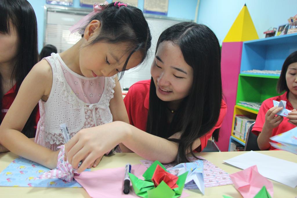 此次社会实践活动中小朋友年龄差异较大,面对这样的情况,我们的志愿者在课程设置上也别出心裁,运用具有特色的教学理念授课。不仅融入一些我国的传统文化,更是将我们新葡的京集团35222vip关于“外语”方面的特色也结合了起来。将中西方文化的融合、生动地在课堂上展现出来。