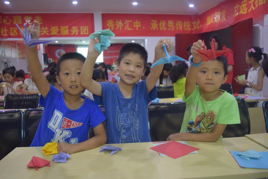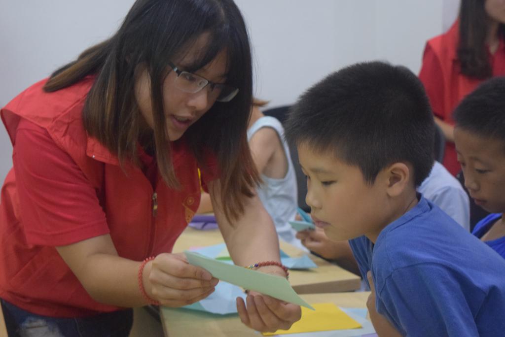 教育关爱服务团的成员秉承实践传承习文化的理念,充分抓住社区小朋友乐于动手这一兴趣特点,将中国传统民间艺术——皮影,与手工课巧妙结合,志愿者带领着小朋友们在手工制作皮影的过程中,亲身体验中国传统文化的博大精深;折纸作为传统文化的载体激发起社区小朋友们强烈的好奇心,志愿者们将传统民俗文化的讲解贯穿在折纸教学中,小朋友们通过动手课不仅可以了解和学习到中国传统文化,而且可以互帮互助,并与志愿者和其他小朋友建立纯真的友谊,达到了一举两得的目的。