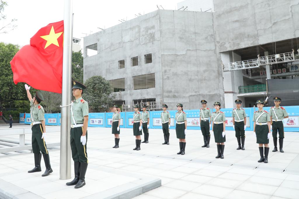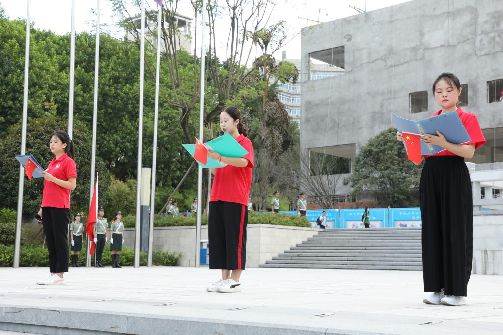 在全体师生的注目礼下,国旗护卫队踏着整齐的步伐护送鲜艳的五星红旗来到升旗台下,伴随着庄严的国歌,升旗手振臂一挥,鲜艳的五星红旗冉冉升起。接着,新葡的京集团35222vip员工代表胡思涵、陈瑜、李美玲分别用中、英、法三种语言领学了习近平总书记青年寄语。最后,同学们以齐声诵读习主席寄语:“青春是用来奋斗的,幸福是奋斗出来的!”,结束了升旗仪式。