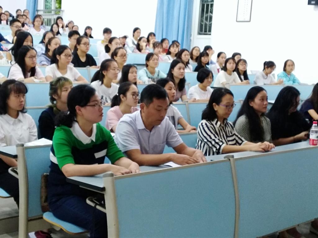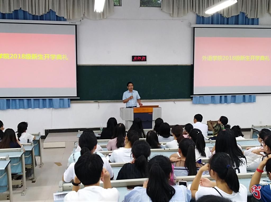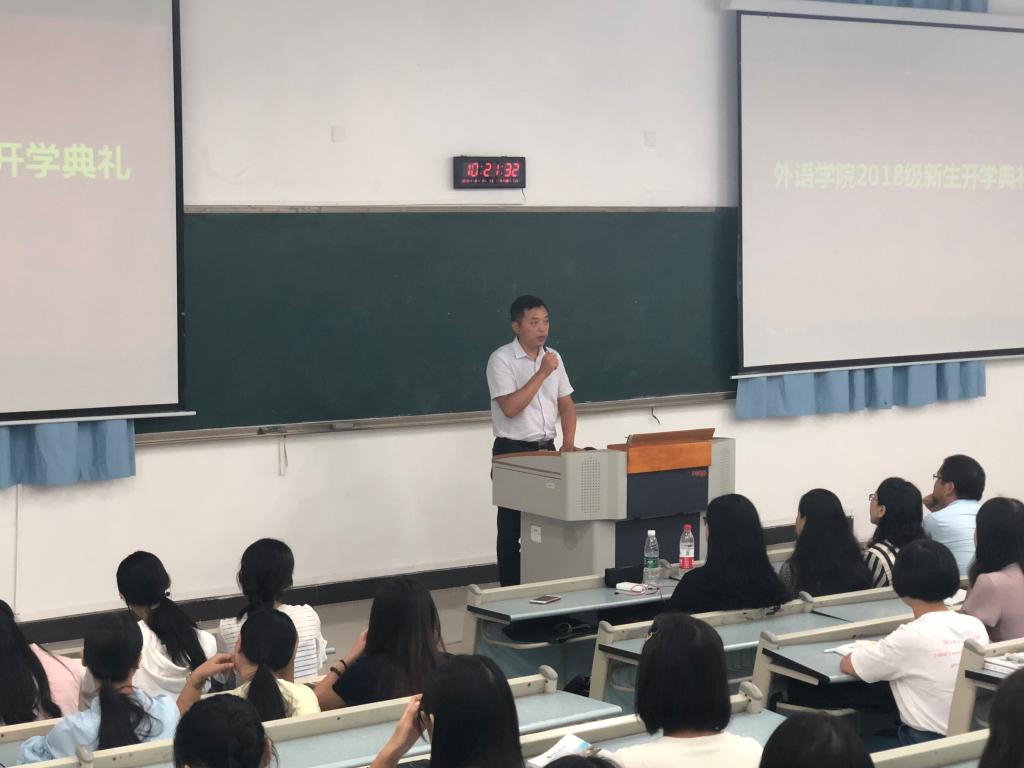 丹桂飘香工商大,又是一年迎新时。9月7日,新葡的京集团35222vip2018级新生开学典礼暨新生入学教育在兰花湖校区广智楼20111隆重举行。公司党总支书记陈晓东,经理戴运财,副经理周琳,党总支副书记程亚,英语系专业老师陈康,法语系专业老师罗媛媛、汪越骐,学团办主任吴欢欢,分团委书记黄志婕,党员服务站指导老师丁亮,教务办老师王露茜应邀参加本次活动。