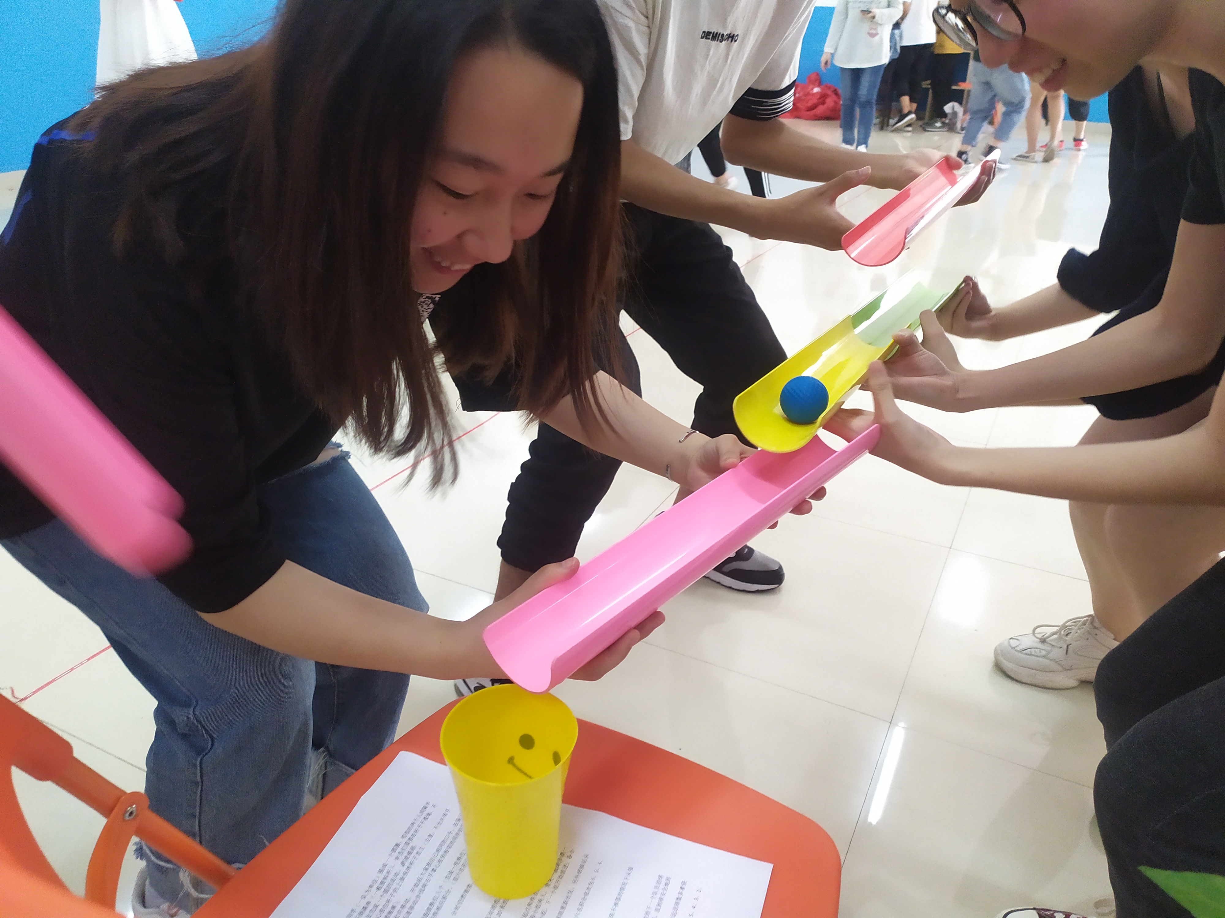 此次活动设有不倒森林、背夹球、珠行万里、有轨电车和叠报纸五项游戏。前来参与活动的同学通过自行组队和随机组队两种方式被分为8组,并在队长的带领下完成全部游戏,争夺比赛名次。随着游戏的进行,来自全校三个年级、二十多个专业的同学很快建立起信任与默契,完全融入到团队当中去。游戏中,同学们秉持着“友谊第一,比赛第二”的原则,相互鼓励,充分发挥团队凝聚力,聚力同行争取好的比赛成绩。现场时而口号嘹亮,时而欢笑阵阵。