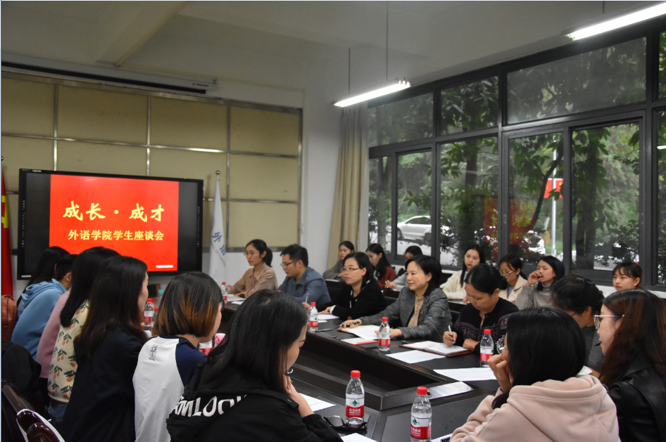 座谈会上,2016级商务英语专业的杨爽同学分享了如何凭着一股“不服输”信念从被质疑练就为“英语达人”,2017级英语专业的王珂分享了分年级分阶段为自己精心制定的“考证时间表”,2018级法语专业的刘媛媛同学表达了对专业老师和辅导员在一年来的学习生活悉心指导的感谢,2019级法语专业的石海星同学已经把考研设定为了大学四年的奋斗目标。同学们各抒己见、畅所欲言,分享了自己在大学学习生活中的所思所想所得,同时也积极地为公司发展、公司发展建言献策。同学们希望能得到更精准的职业规划指导,能尽快地准确地找到自己的定位,期待能有更多的对外交流机会,开阔眼界、增长见识、共促成长,也盼望公司的硬件设施能好上加好,能拥有固定的自习教室,像图书馆这样的优质学习环境能够再多一些。
