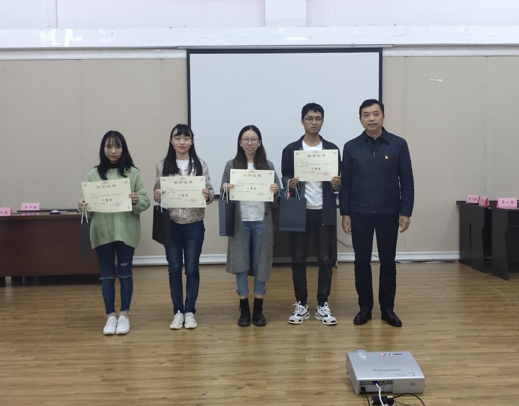 活动开始,主持人介绍了出席本次活动的领导和嘉宾。随后,各小组组长依次介绍了各组的组名和口号,在一声声响亮的口号声中,现场的氛围也逐渐热烈起来。在裁判介绍完比赛规则后,比赛正式拉开帷幕。首先进行的是本次知识竞赛的第一个环节——抢答环节,该环节共30道题,主持人宣读完每道题目后,各小组即可按下抢答器进行抢答。在这一环节中,各小组成员的激烈比拼赢得了观众的阵阵掌声。第二环节为六组比赛选手两两竞争,共三轮比拼,各小组随机选择专项题目进行抢答,本轮比赛结束,前两轮总分排名前三的第一、第二、第六小组进入了最终的决赛。决赛环节,晋级的三个小组首先进行了风险赛,每组选择分值不同的题组进行答题,根据得分,每小组获得了相应的复活机会,随后,三个小组派出组长进行最后的“车轮赛”。在最后的角逐中,三个小组组长并驱争先,多轮答题后,仍无小组淘汰,比赛进入了加时赛,在加时赛中,比赛结果终于揭晓,第六组最终获得了第一名,第二组获得了第二名,第一组获得了第三名。比赛结束后,嘉宾们依次给优秀小组以及获奖小组颁奖并合影留念。最后,简福平副处长对活动进行了总结和点评,对本次活动的开展给予了充分的肯定,伴随着同学们热烈的掌声,本次活动正式结束。出席嘉宾、参赛人员及工作人员进行了合影留恋。